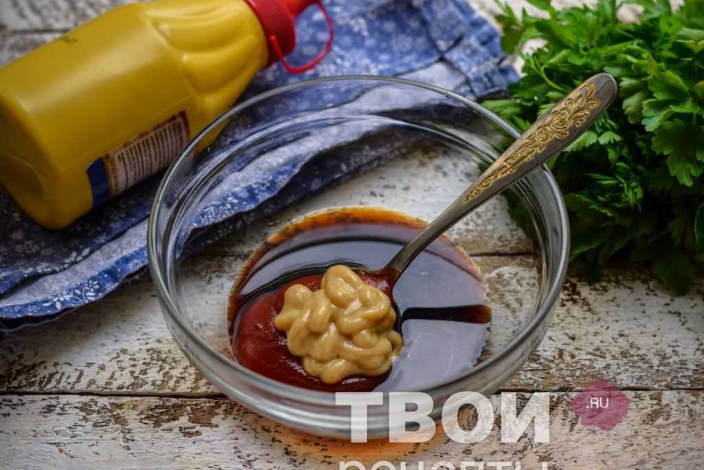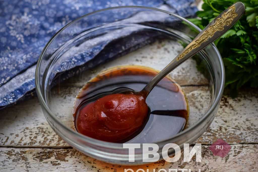 Итак, для начала нужно приготовить маринад – в отдельной емкости смешать соевый соус и четвертую часть кетчупа. Брать можно кетчуп или домашний, или магазинный, в нашем варианте – второй – со вкусом паприки.