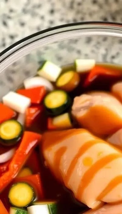 - Тщательно перемешайте, чтобы каждый кусочек курицы был покрыт маринадом.