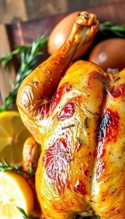 - Регулярно поливайте курицу выделившимся соком во время запекания.