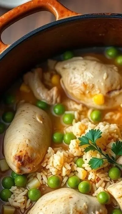- Добавление риса: Промойте рис под холодной водой до прозрачности. Добавьте рис к курице и овощам, перемешайте.
