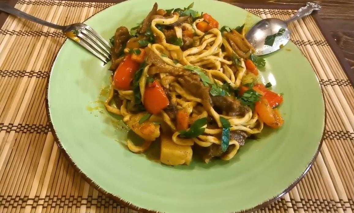 Вариаций восточного кушанья на сегодняшний день множество. Я вам хочу предложить очень вкусный, не раз опробованный моей семьей рецепт приготовления лагмана с лапшой и картофелем. Последний овощ более привычен на наших столах и прекрасно себя зарекомендовал в этом блюде.