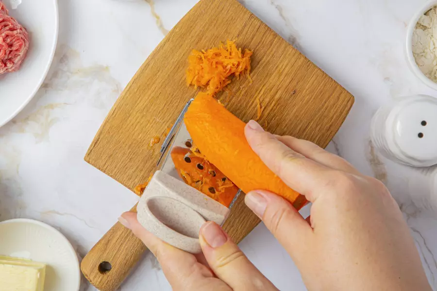 Шаг 1 Для начинки очистите лук и мелко порубите его ножом. Морковь очистите и натрите на средней тёрке.