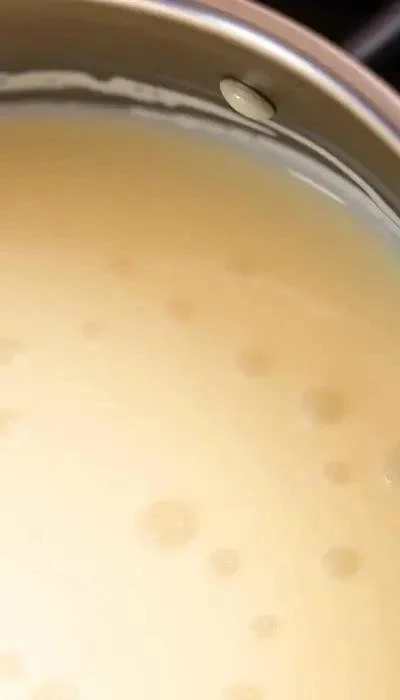 - Постепенно вливайте молоко, постоянно помешивая, чтобы не образовались комки.