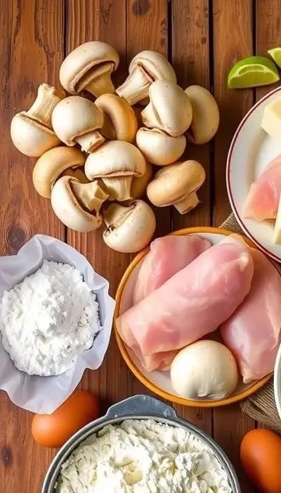 - Для начинки: 500 г куриного филе, 300 г шампиньонов, 1 луковица, 2 зубчика чеснока, 150 г тертого твердого сыра (например, пармезан или грана падано), 200 г томатного соуса, соль, перец, итальянские травы по вкусу.