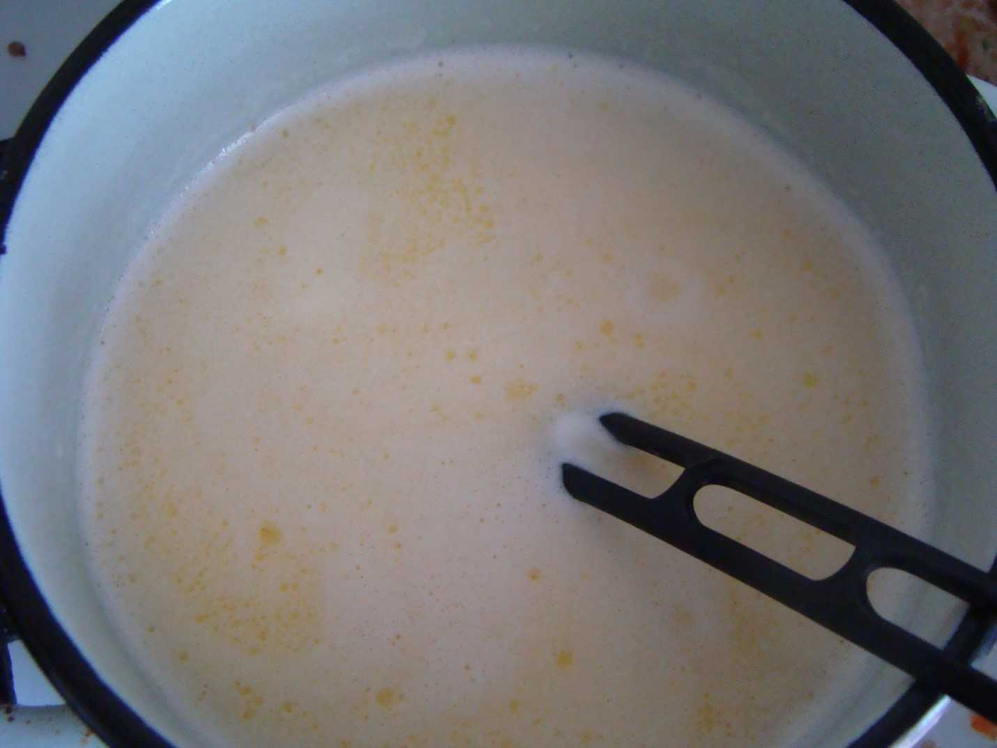 1. Молоко, масло, тертый сыр нагреваем в кастрюльке.