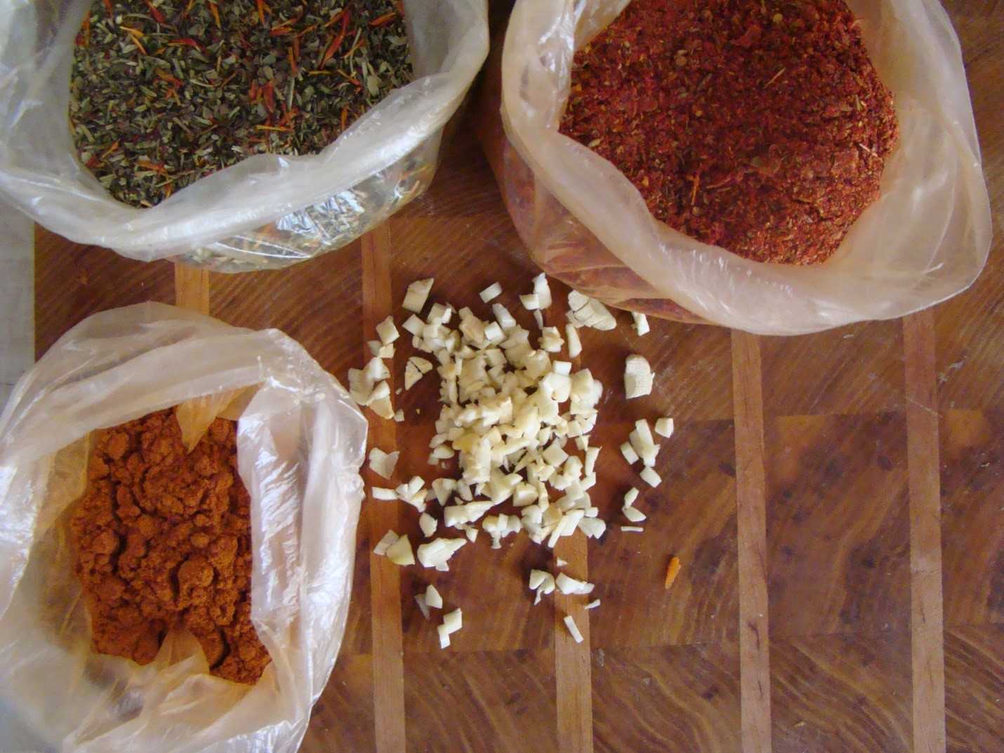 Шаг 1. Для первого соуса овощи измельчите блендером. Если взяли свежее мясо, тогда пропустите через мясорубку. Нашинкуйте чеснок.