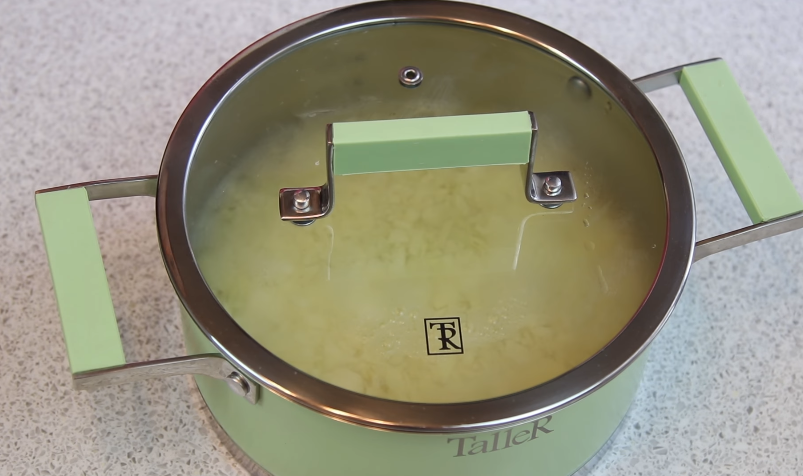 Рис промываем в нескольких водах, до момента, когда вода станет прозрачной. И также заливаем крупу кипятком на 5 минут. После его также сливаем воду.