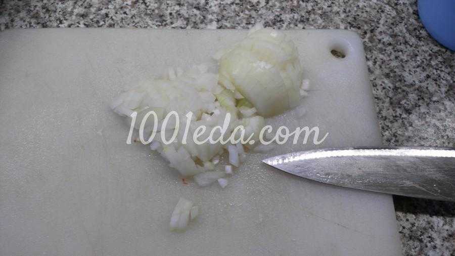 - Фарш смешать с измельченным луком, чесноком, 100 мл воды, кориандром, специями.