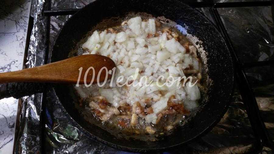 - Для приготовления начинки очищенный и промытый картофель некрупно порезать, залить кипятком и сварить до готовности. Лук измельчить, обжарить до равномерного коричневатого цвета. Слить картофельный отвар, картошку пюрировать, перемешать с жареным луком, солью и приправами по вкусу. Охладить картофельную начинку.
