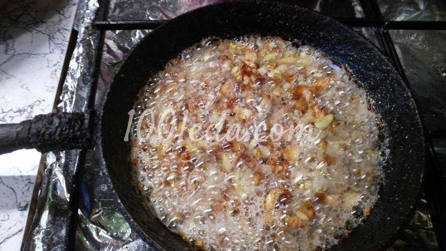 Добавляем очищенный, промытый, пропущенный через пресс чеснок, все перемешиваем и сразу же выключаем нагрев плиты.