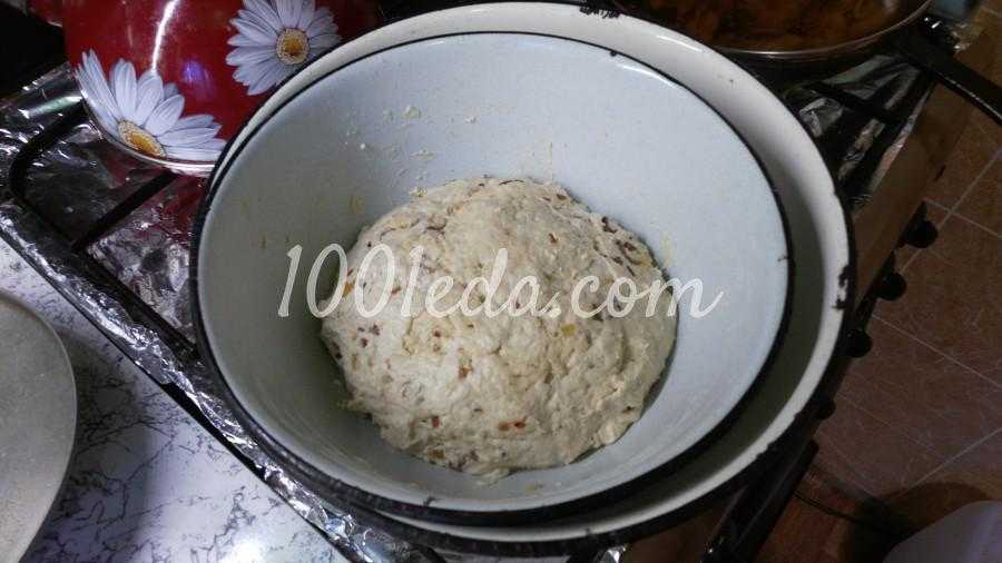 - Всыпать муку, дрожжи, вымешать тесто, оставить отдыхать.