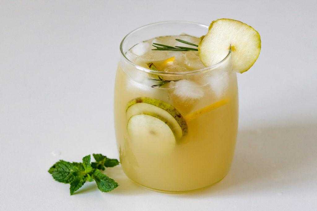 Поклонникам дюшеса посвящается. Этот лимонад готовится на основе груши, и в зависимости от выбранного сорта может превратиться в десятки разных напитков. Лимон и розмарин лишь придают пикантности его яркой сладости.
