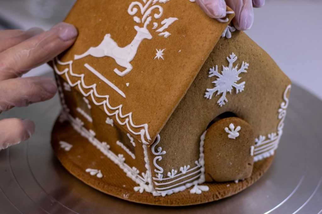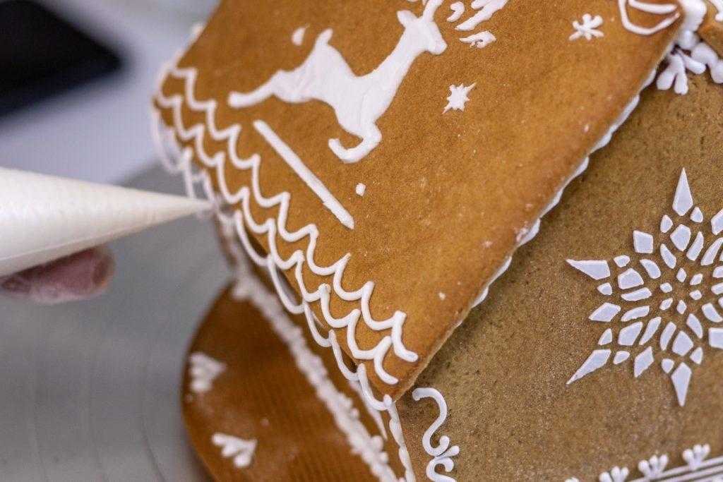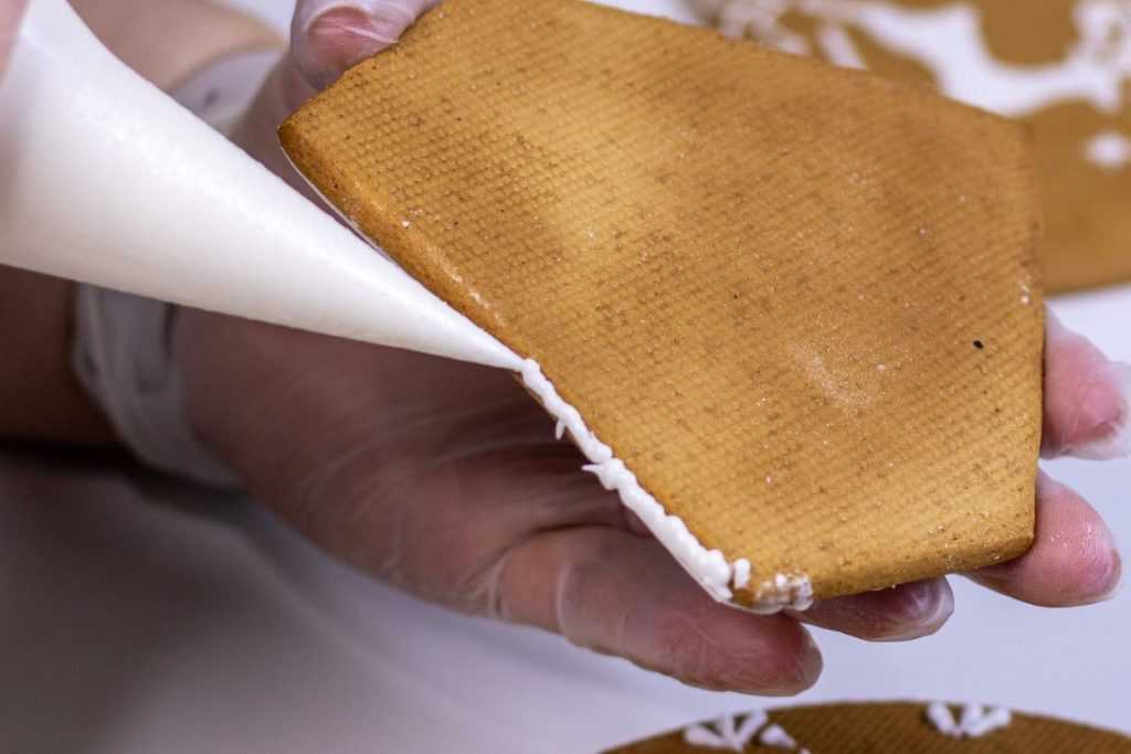 В чашу измельчителя отправляем банан, добавляем оливковое масло, сахарозаменитель и превращаем все в однородную массу. Следующим этапом всыпаем мускатный орех, корицу, молотый имбирь, какао, муку, соду. Замешиваем тесто, убираем в холодильник на полчаса. Затем раскатываем в пласт толщиной полсантиметра, вырезаем печеньки любой формы. Выпекаем 10 минут, 180 градусов. Смешиваем ингредиенты для глазури, перемещаем в кондитерский мешок, украшаем по своему вкусу.