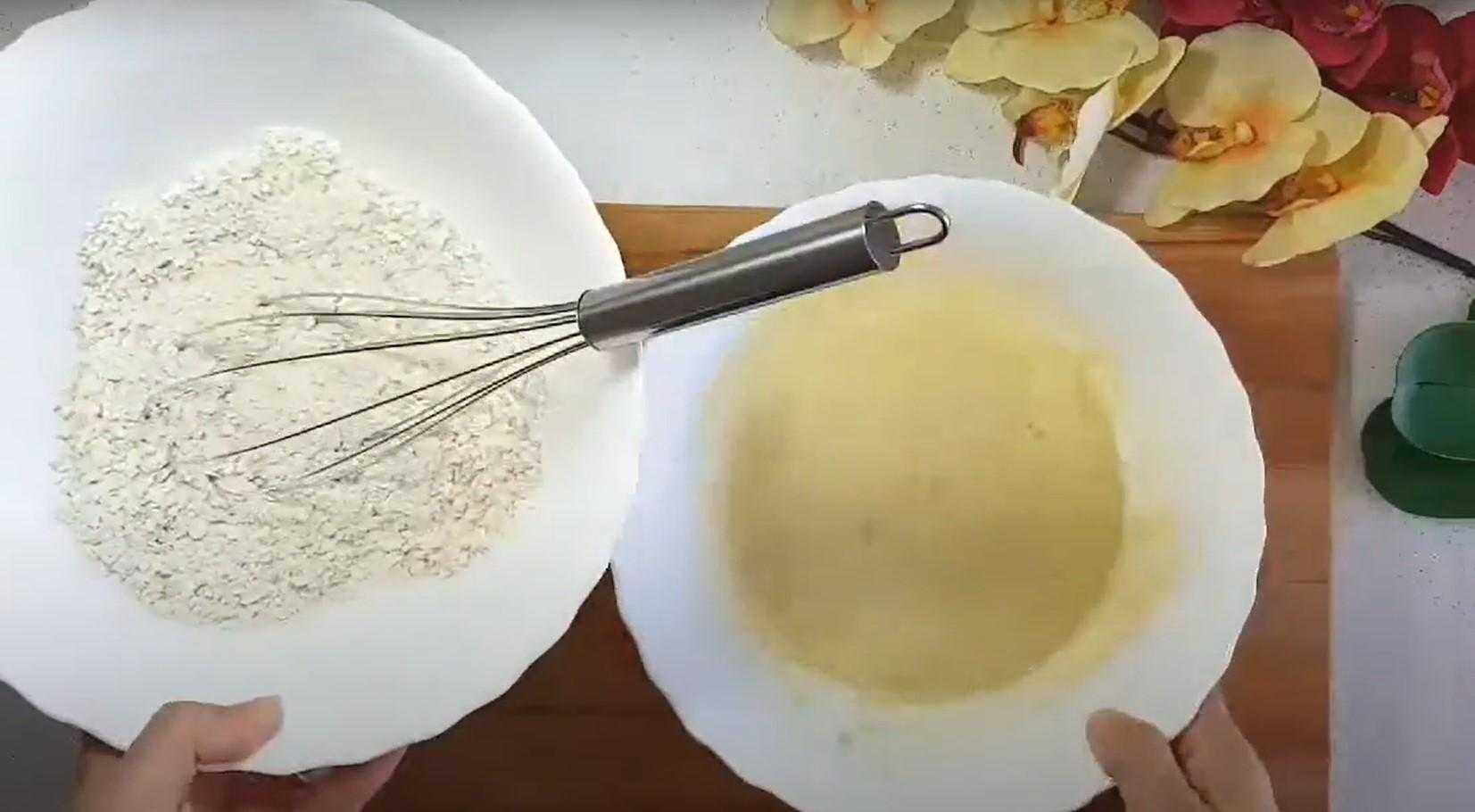 В несколько приемов соединяем сухие и жидкие ингредиенты.
