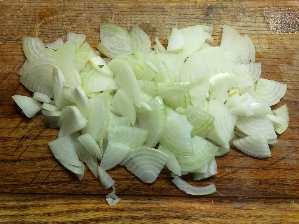 Лук очищаем, нарезаем полукольцами.