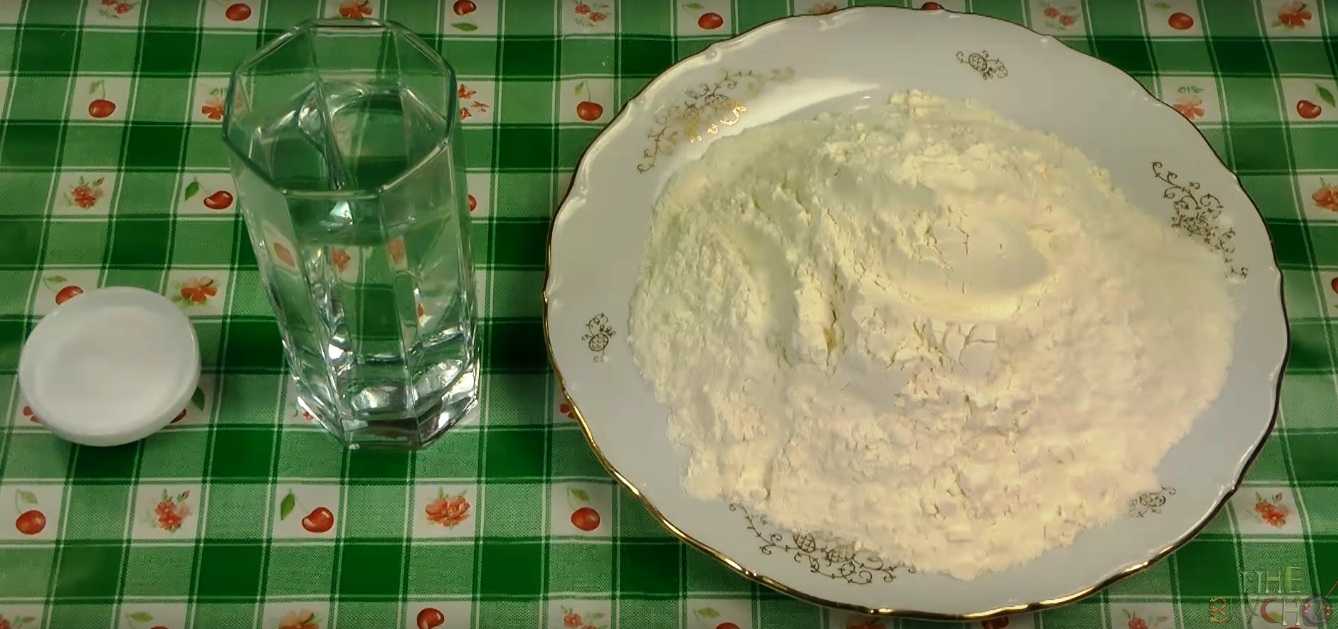 Сначала приготовим тесто. Для этого в муку добавляем яйцо, щепотку соли и вливаем воду. Не имеет значение будет она тёплая или холодная. А вот количество муки нужно регулировать по обстоятельствам, так как она может иметь разные характеристики и ее, соответственно, может потребоваться больше или меньше.