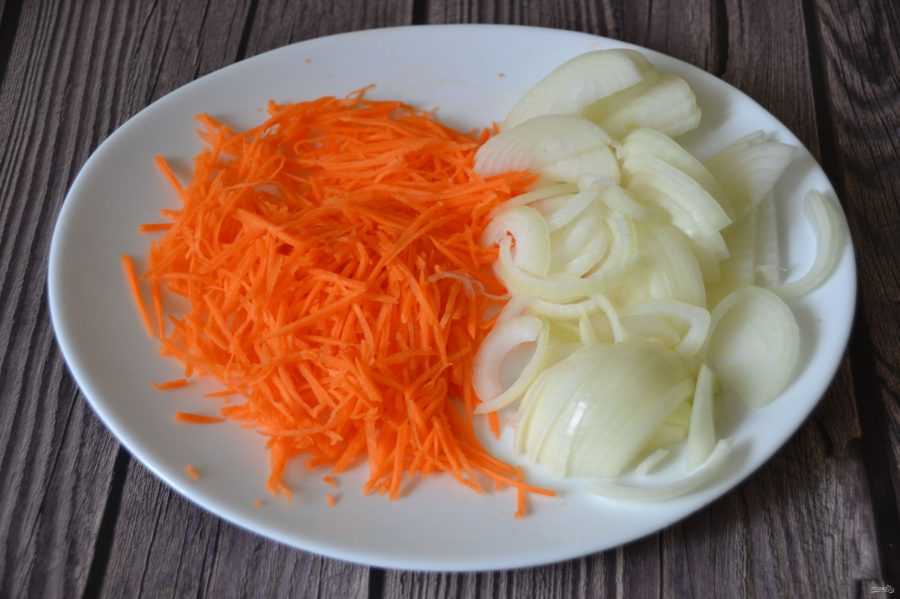 Натрите на терке морковь, лук нарежьте полукольцами.