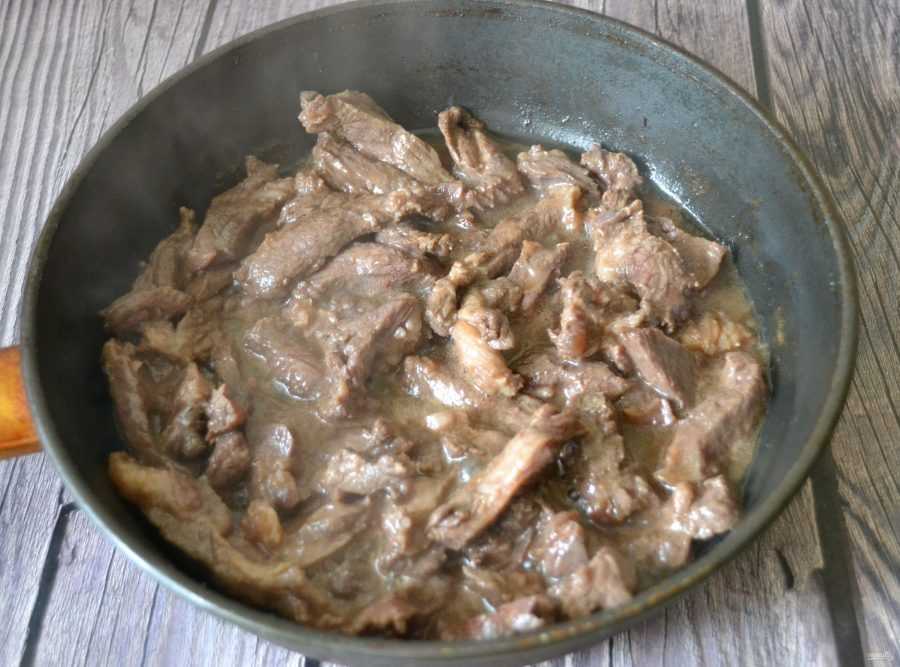 - Переложить обжаренное мясо в тарелку и накрыть крышкой.