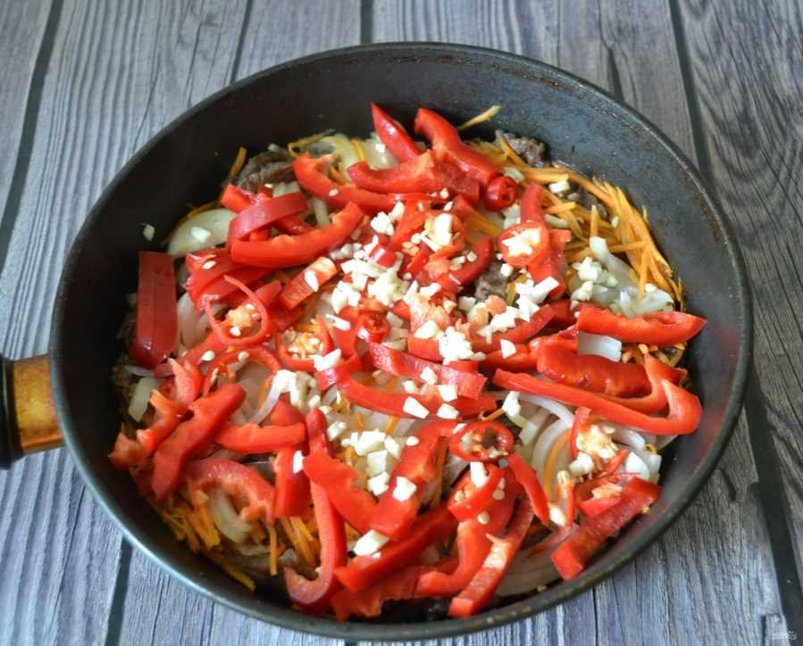 - Перцы. Помните по 3 минуты! Не стоит готовить долго, овощи не должны превратиться в размазню.
