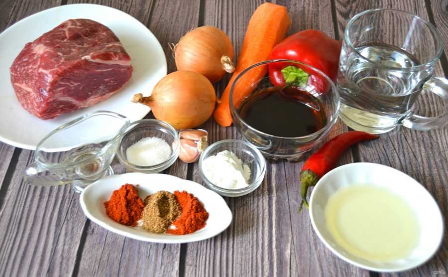 - Мариновать желательно от 2 до 8 часов в зависимости от размера кусков говядины.