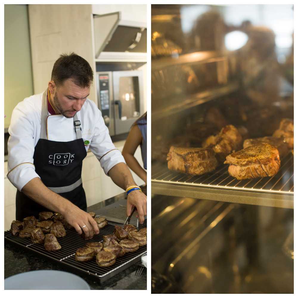 «Купить такое мясо можно не в любом мясном отделе, потому что это самая ценная часть туши. Поэтому приходите на базар, смотрите, у кого самое хорошее мясо, и заказываете бон-филе. Вообще, девушки, мясо и мужа нужно выбирать по одним правилам: если нравится — только тогда брать. А не так, схватила то, что осталось, или все равно что-то брать надо», — говорит Роман Дубницкий.