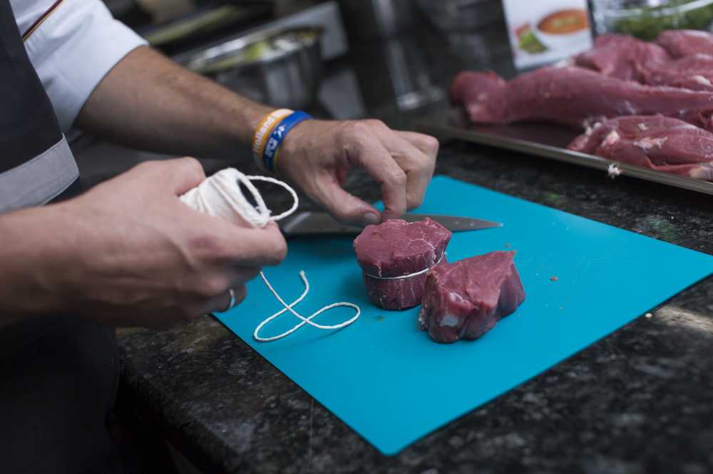 Берем именно вырезку бон-филе — это заднепоясничная часть туши. В течение жизни животного эта мышечная ткань почти не получает физической нагрузки, поэтому является наиболее нежной и вкусной.
