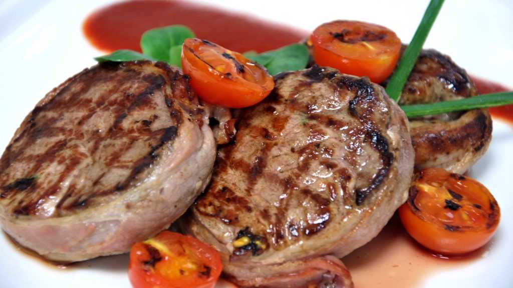 Рецепт жареных медальонов из индейки с беконом