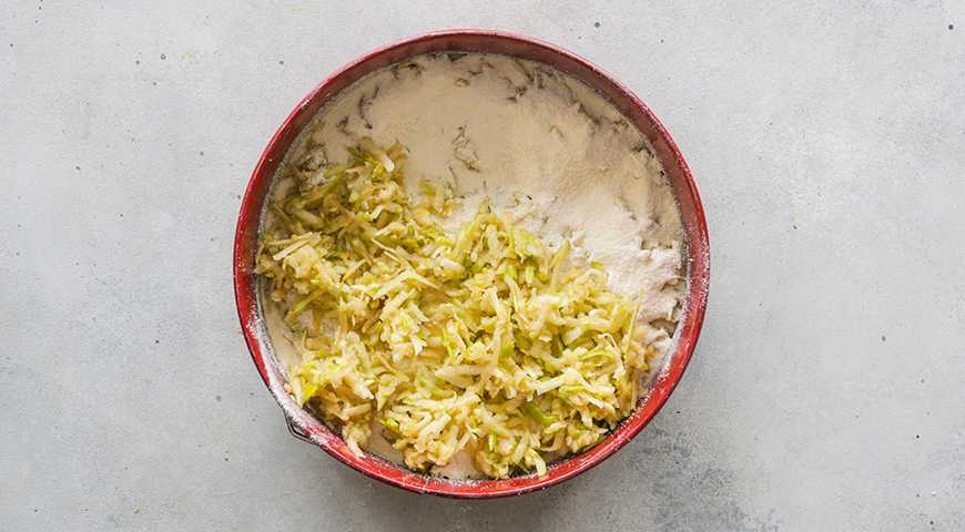 Натираем очищенные фрукты на крупной терке. Еще парочка минут, если делать это вручную, и всего секунд двадцать, если достать кухонный комбайн.