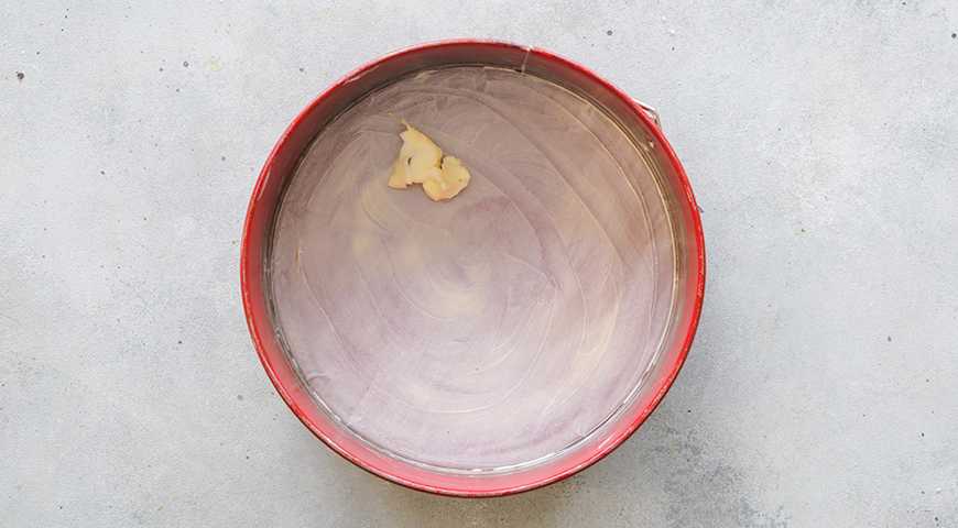 Натираем оставшееся масло – тоже над формой. Если вы не думаете о том, как себя чувствует талия, масла можно взять чуть больше – оно придаст готовому пирогу приятную хрустящую корочку.