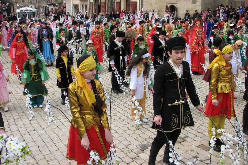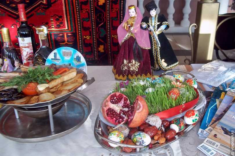 В Азербайджане Навруз также начинается словами приветствия. Одним из главных праздничных блюд у азербайджанцев считается рыба с головой, фаршированная орехами и кишмишем. Хозяева предлагают гостям попробовать домашних сладостей, желая, чтобы наступивший год стал не менее ярким и “сладким”, чем эти угощения.