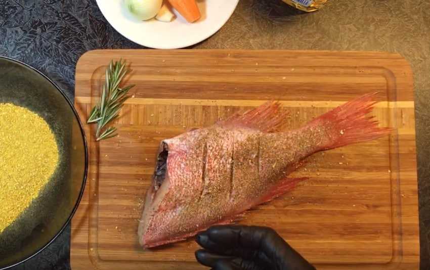 1. Рыбную тушку промойте, почистите и сделайте надрезы вдоль спины с каждой стороны.