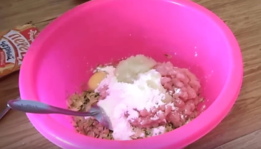 - Замесить тесто. С добавлением куриного фарша оно более плотное, чем в классическом рецепте, но консистенция не должна быть слишком густой.