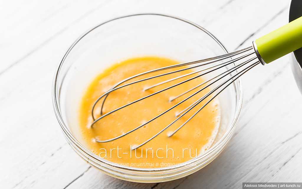Чуть позже вы узнаете, что яйца придется разделять на белки и желтки. К желткам добавится молоко, а белки взобьются в пышную пену. В данном рецепте этого нет, но многие повара к сырым белкам вливают лимонный сок, чтобы сделать их белоснежными. На 6 куриных яиц берется 5-6 мл свежевыжатого лимонного сока.