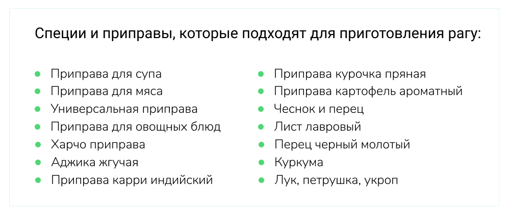 Когда рагу уже почти готово, то можно добавить зелень (петрушку, укроп). Но не раньше, чем за 5 минут до выключения огня.