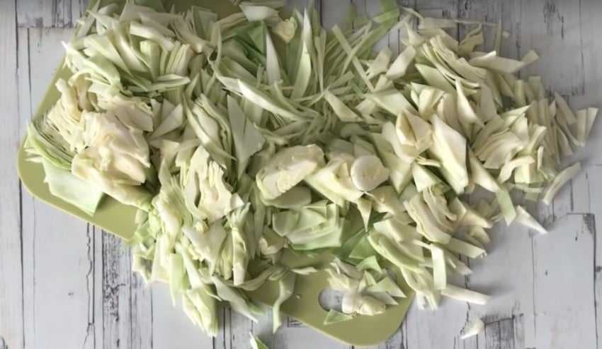 2. Капусту нашинкуйте. Я предпочитаю в этом блюде довольно крупную шинковку, на тарелке такое рагу выглядит аппетитнее.