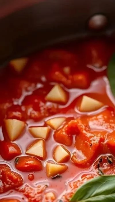 - Добавление помидоров и тунца: Добавьте нарезанные помидоры (или консервированные помидоры, размятые вилкой) в сковороду. Тушите около 10 минут, пока помидоры не станут мягкими. Добавьте томатную пасту, орегано, базилик, красный перец хлопьями (по желанию), соль и перец. Перемешайте и тушите еще 5 минут.