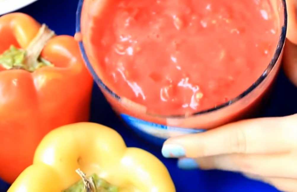 3. Помидоры измельчите в блендере с зубчиком чеснока, подсолите.