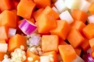 - Морковь: 1 крупная. Натрите морковь на крупной терке или нарежьте соломкой.