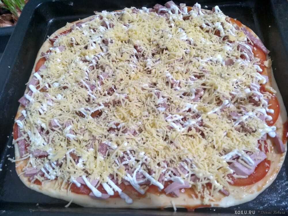Еще один рецепт пиццы с колбасой и сыром на дрожжевом тесте