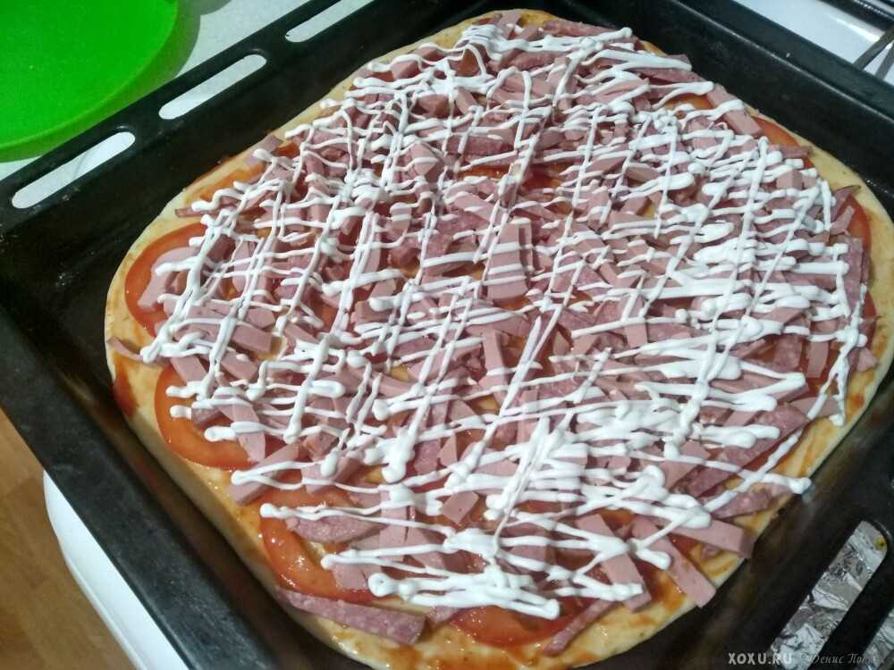 Домашняя пицца с колбасой и сыром. Простой пошаговый рецепт