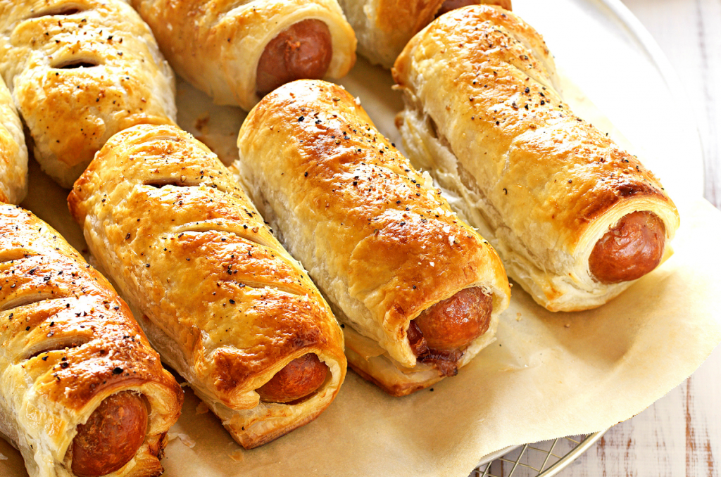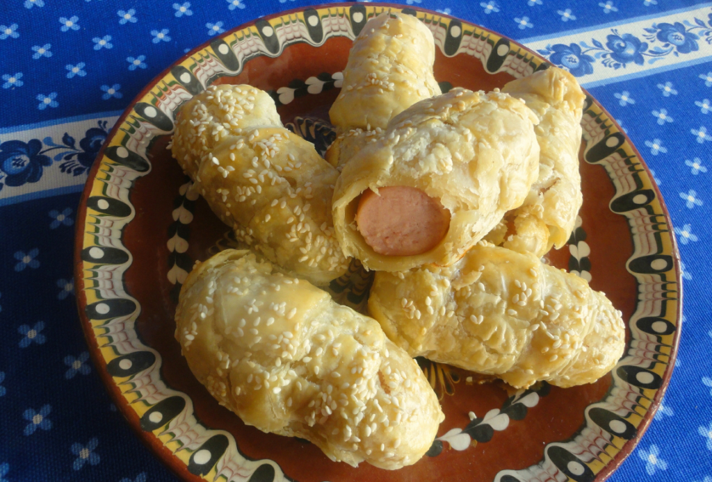 Пока тесто находится в холодильнике, можно приготовить начинку для будущих изделий. Слоеное тесто на сковородке лучше выходитс различной мясной начинкой. Очень вкусными получаются даже простые сосиски, завернутые в такое тесто.