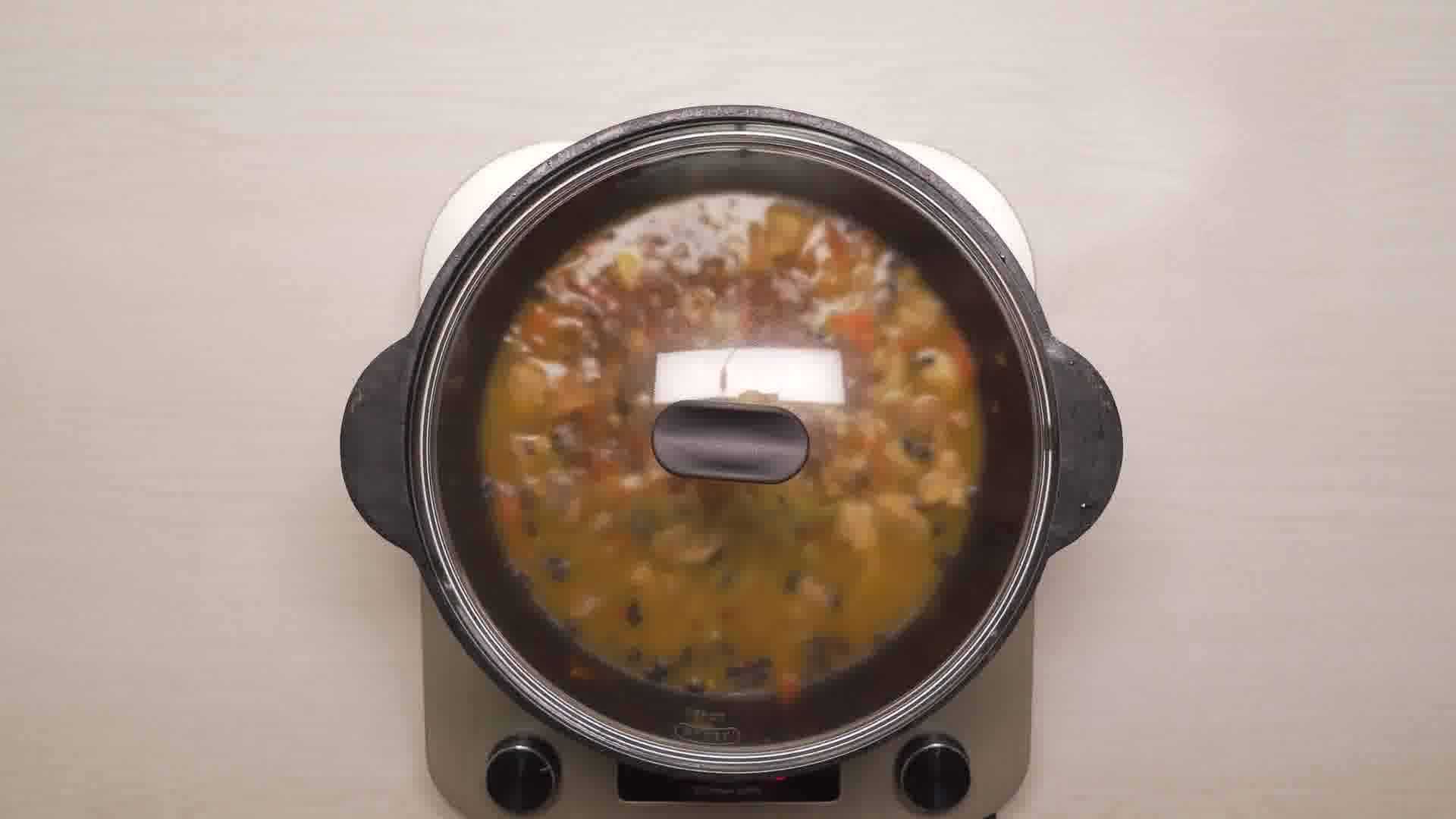 Шаг 10. Влить еще 400 миллилитров кипятка. Томим 15 минут.
