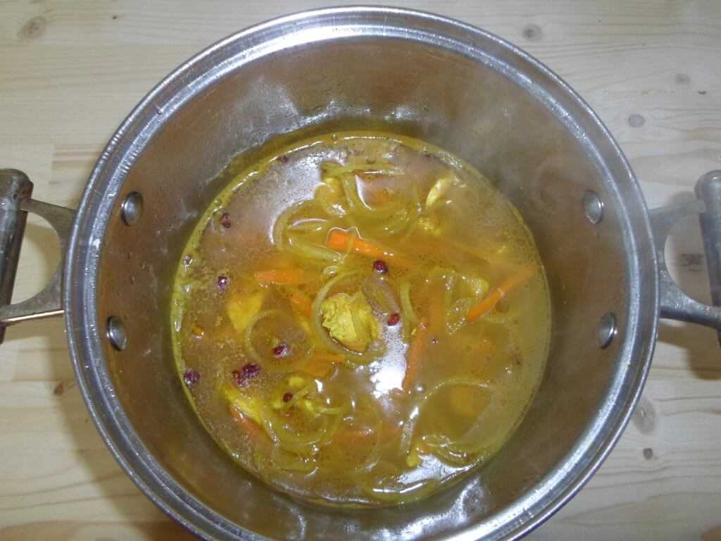 В этот раз я добавила ещё в качестве специи 1 острый перчик, который положила целиком. Так он отдаст блюду только свой аромат без горечи.