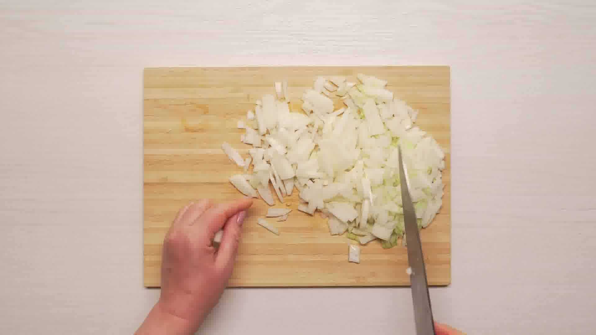 Покрошим лук мелкими кубиками.