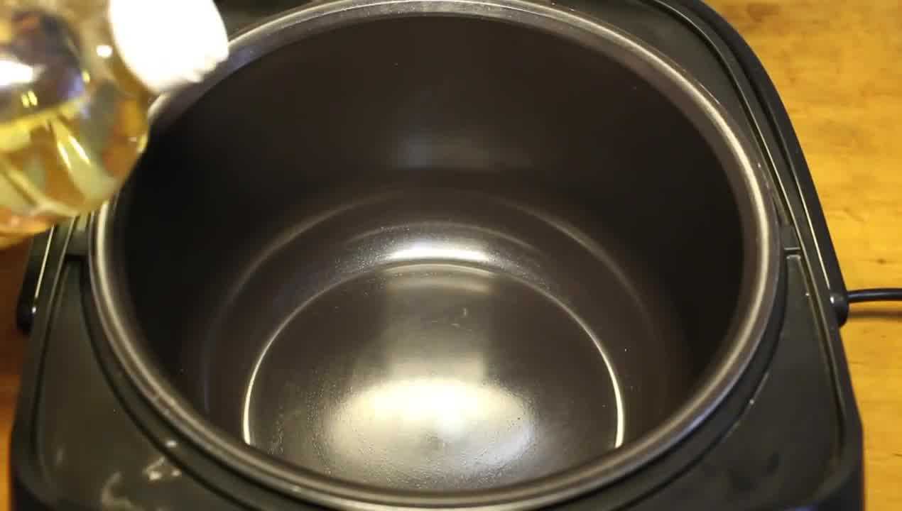На дно чаши мультиварки вливаем масло. Выбираем режим Жарка и увеличиваем время – 20 минут.