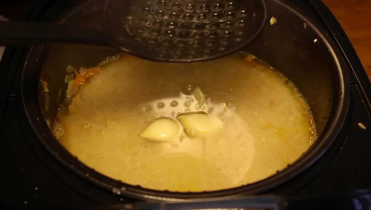 4. Готовим рис, зубчики чеснока, кипятим и солим рецептурную воду.