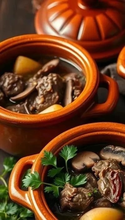 - Накрыть горшочки крышками и поставить в разогретую до 180°C духовку на 1,5-2 часа.