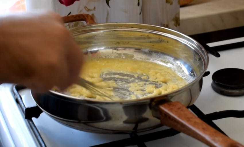 На этом этапе важно разбить все комочки. Когда масса станет гладкой и однородной, вылейте остальную воду и перемешайте