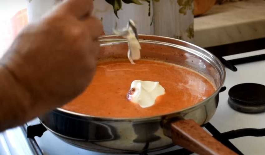Сметана смягчает вкус томатной подливы, делает ее консистенцию более нежной, сливочной. Вкус блюда от этого только выигрывает. Добавляйте свои любимые специи — будет очень аппетитно!