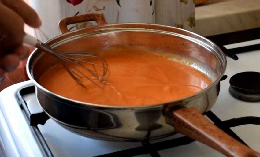 Когда жидкость закипит, выключите огонь. Подлива с томатной пастой как в советской столовой готова! По желанию можете добавить в нее обжаренный лук и морковь.